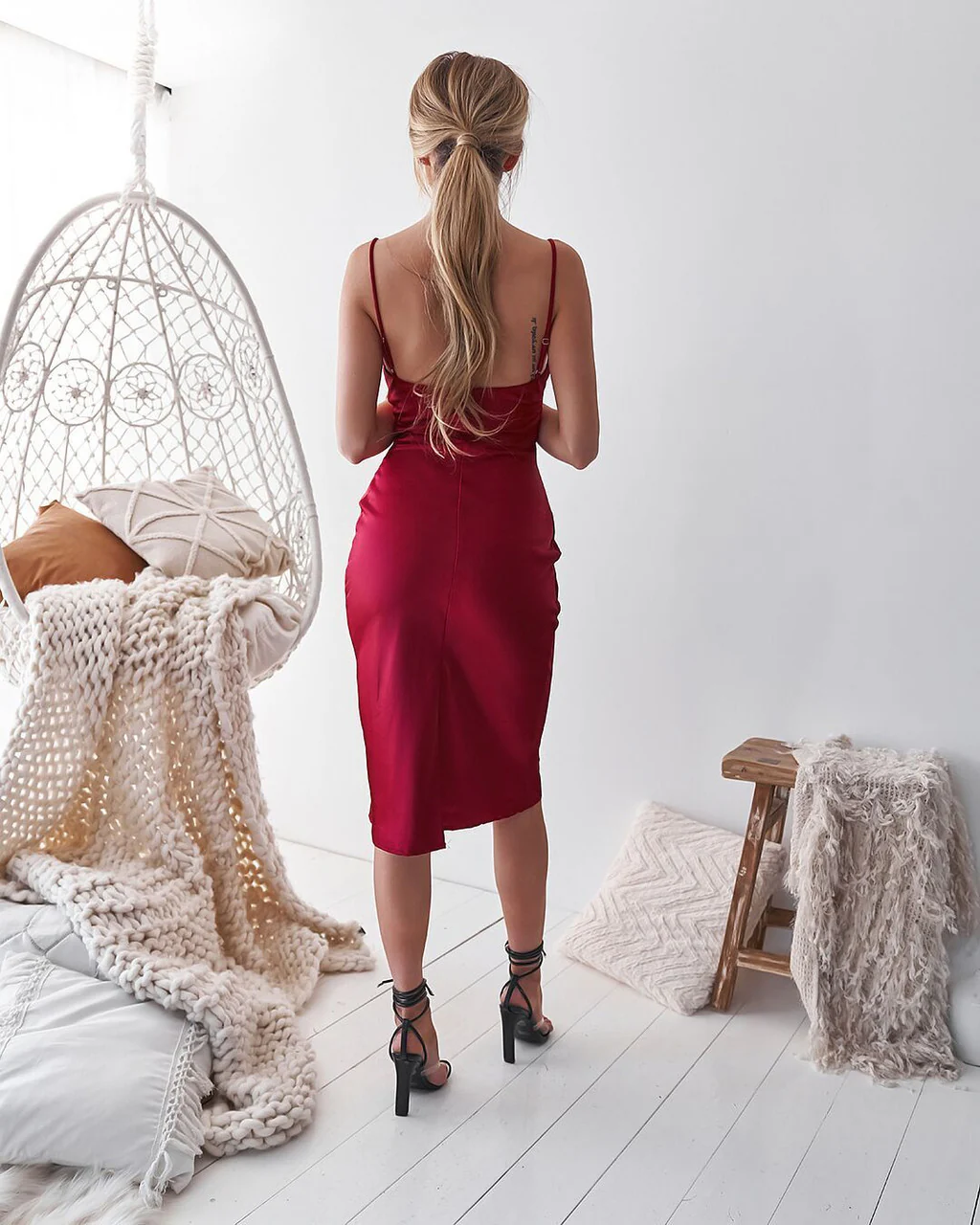 Aspen Midi Dress - Deep Red Satin Slip Dress