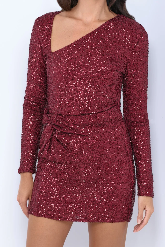Kia Sequin Mini Dress - Burgundy