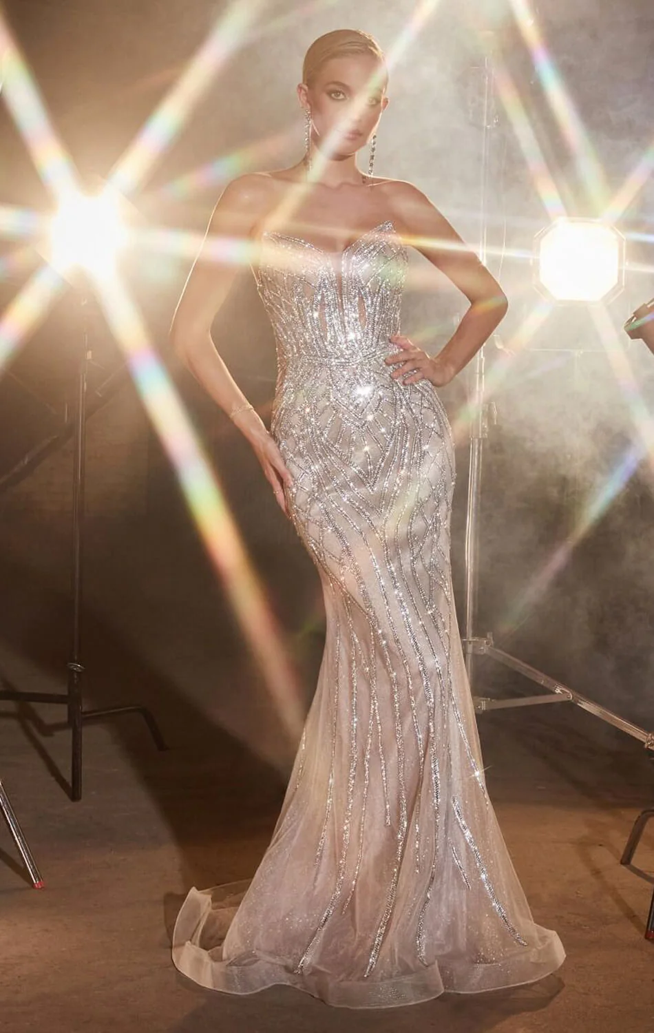 Maxwell Gown - Silver/Nude - CRYSTAL STRAPLESS EMBELLISHED MERMAID GOWN